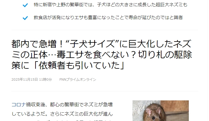ネズミ駆除、今かなり忙しいので、さもありなん、という記事なのですが…